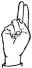 На ћирилици написано АЛЕКСА ДАБИЋ састоји се из 11 слова [?]. Исписано ћириличном једноручном азбуком за глувонеме: